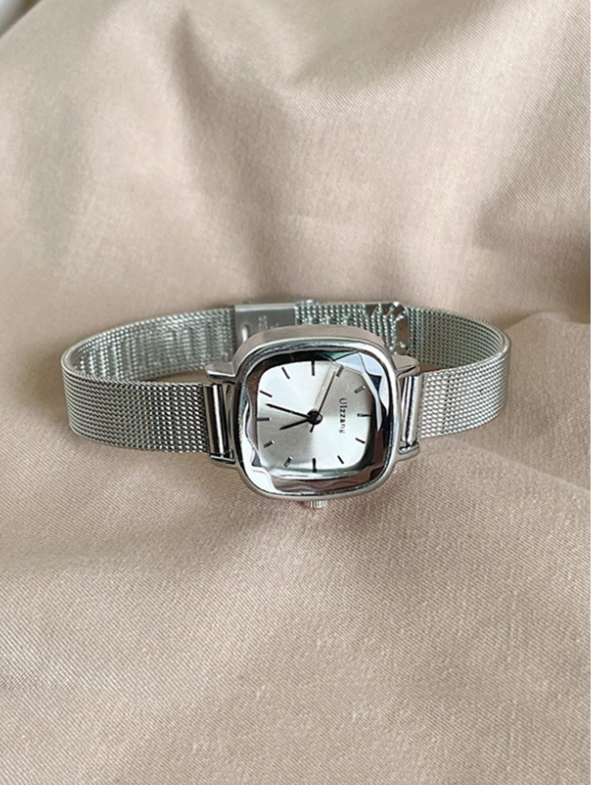 Un clásico minimalista con un toque moderno. El Reloj Mesh Elegancia Plateada presenta una caja cuadrada y una esfera limpia, combinada con un elegante brazalete de malla en acabado plateado.