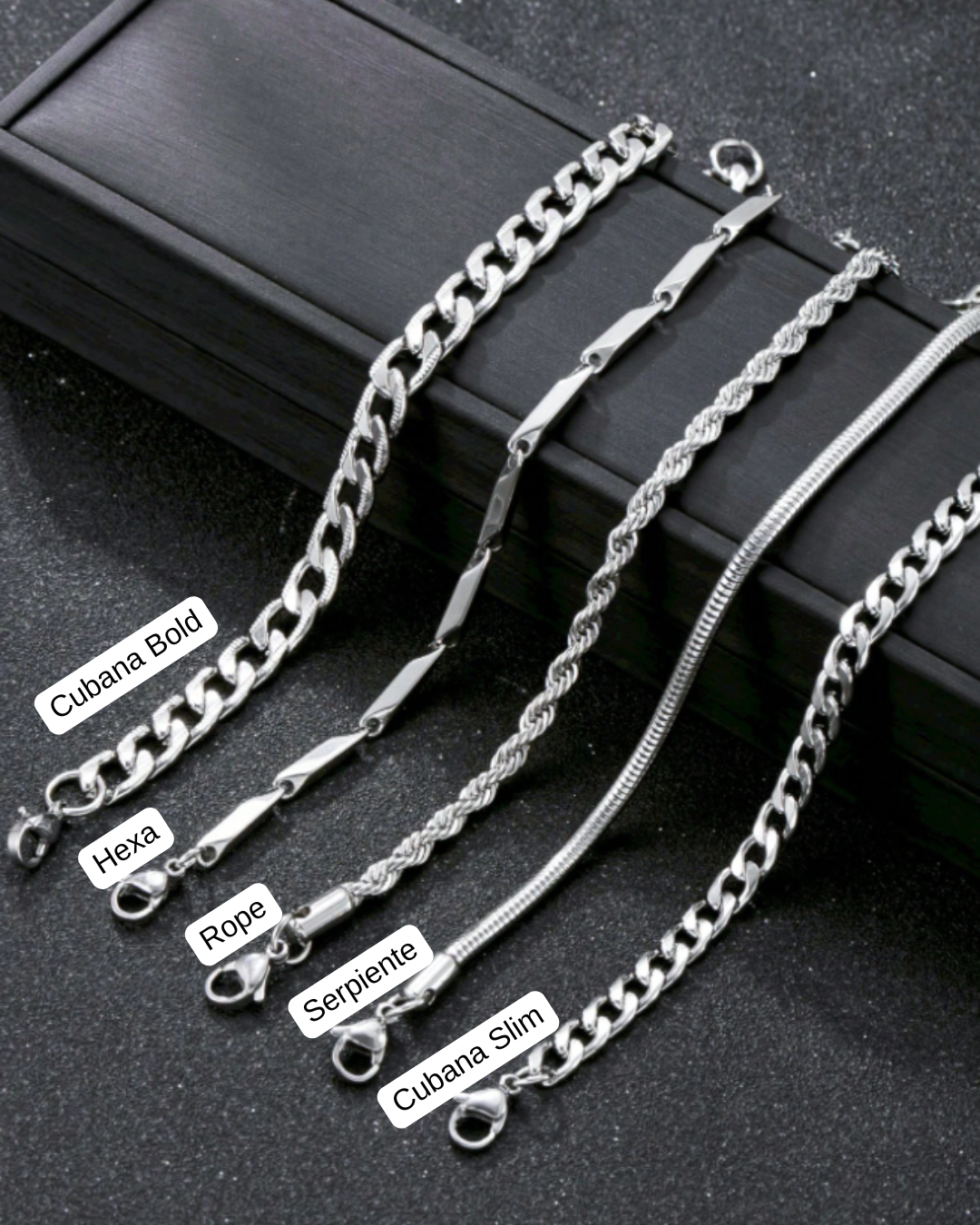 Las pulseras Kimera Essentials están diseñadas para combinar entre sí y elevar cualquier look, ya sea formal o casual.