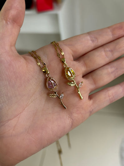 💍 Diseño Exclusivo: Collar dorado con dije de tulipán detallado.